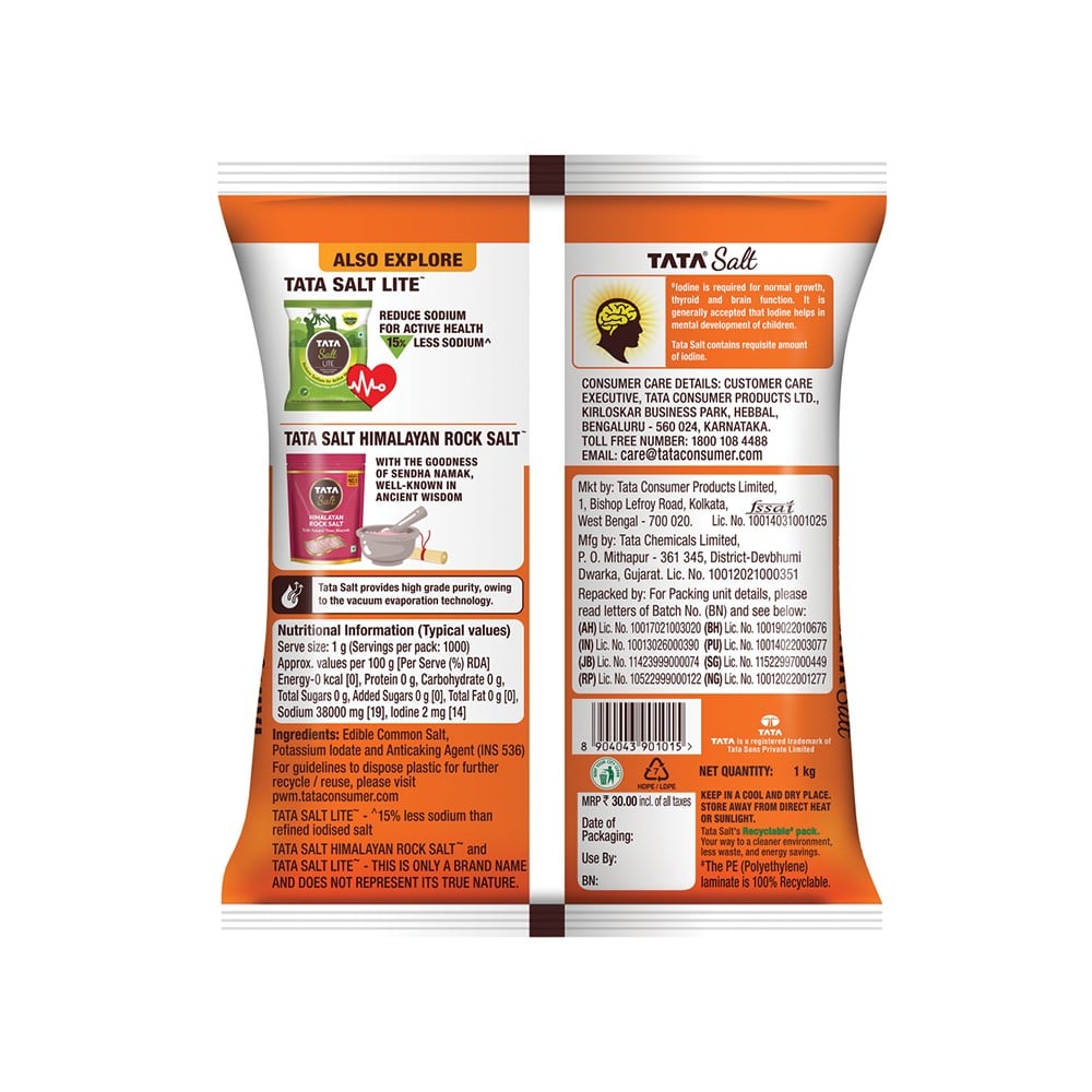 Desh ki Sehat, Desh ka Namak! Now celebrating 40 years of trust, Tata Salt has pioneered India’s largest vacuum evaporation technology. Untouched by hand, Tata Salt offers an assurance of Iodine. With vacuum evaporation technology, Tata namak offers a hygienic alternative to your regular table salt. It contains the requisite amount of iodine which is an essential dietary nutrient for humans.